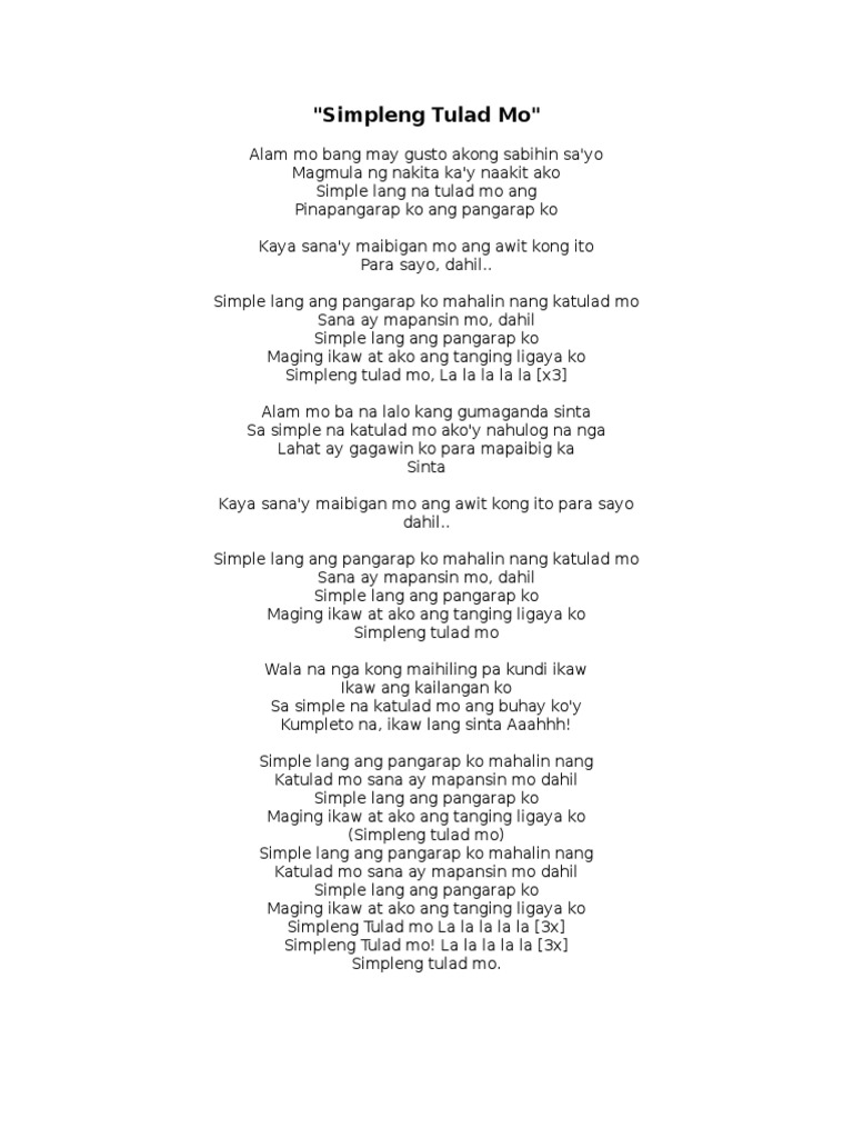1584 completed orders May 20 2020. Walang mahirap sa taong may PANGARAP Jul 29 2020. Verse F Am Tuwing ikaw ay nariyan Bb Bbm C Sabay kong nadarama ang kaba at ligaya F Am Ang yong tinig wari koy di marinig Bb Bbm C Pagkat namamangha pag kausap ka Dm DmC G Kaya nais kong malaman mo Gm Gm7 Csus - C Ang sinisigaw nitong.